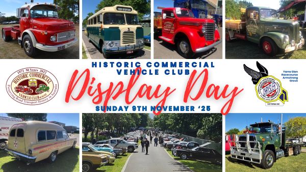 Join the HCVCA (Historic Commercial Vehicle Club of Australia) and BCSV: Bus and Coach Society of Victoria for a relaxing Sunday at Yarra Glen Racecourse on Sunday November 9 2025 enjoying the 44th annual Historic Commercial Vehicle Display. Public gates…